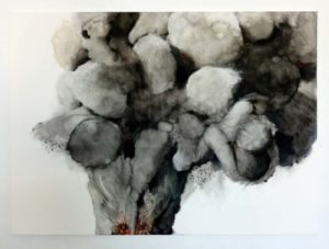 Eine neue Reihe mit gesprühter, in Wasser gelöster, Aktivkohle, Tuschen und Aqaurell auf Papier wurde 2023 gestartet.